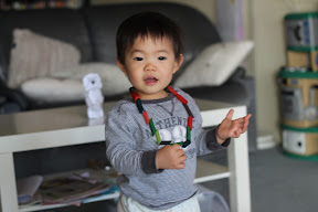 - 玩耍-醒著時,會把他躺放在客廳地上看Nathan看書或玩玩具,Nathan也會不時去抱抱弟弟。躺累了,就讓他趴著,目前他還挺喜歡這樣的模式。曾有一次趴到睡著的記錄。趴著若是把一隻手放到身體下方,有翻過去的記錄。(想當初Nathan不知道要幾個月大才會翻身,弟弟還沒滿月就會了)
