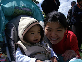 出去玩超開心的!(我看你是因為老媽背著你,所以開心吧!)