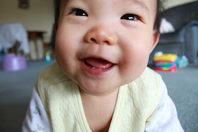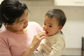 這個月小子終於脫離無齒之徒了,而且還半個月內冒了三顆牙,不過就因為這幾顆牙,全家人的睡眠也被它們搞得亂七八糟。晚上哎哎叫,白天也「歡歡」,只能說小子的牙還真是折騰啊!