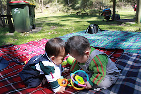 出去玩超開心的!(我看你是因為老媽背著你,所以開心吧!)