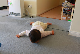 • 很會爬了,而且會故意沒聽見「不可以」。尤其我在做菜時,喜歡爬到廚房,只好再把他抓回客廳。